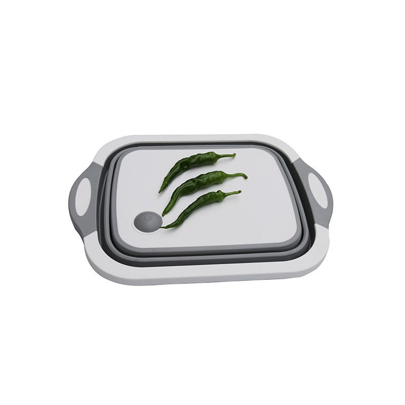 1.MULTI-FUNCTION: Chopping board, vegetable washing drain basket, storage basket. ALL in one kitchen gadget, you can using this for washing vegetable/ fruit/ dish as a foldable dish tub, for cutting slicing as a cutting board, for storing icing beverages vegetable fruit as a storage basket.